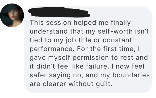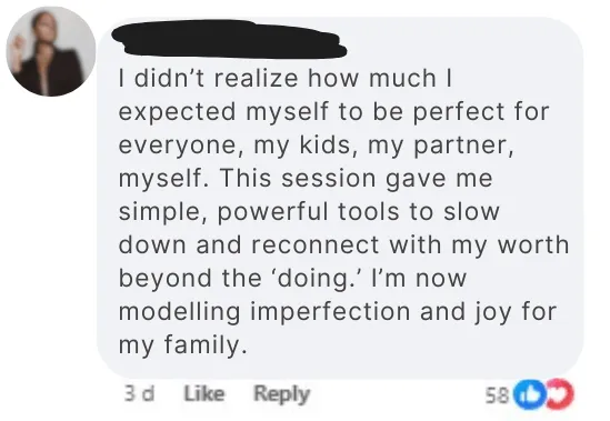 If our session helps you release even one layer of perfectionism or quiet your inner critic for a moment, that’s a win. And if you choose to explore deeper strategies with me afterwards, that option will always be there. But there is no pressure and no obligation this is about creating space for your healing, not about hard-selling